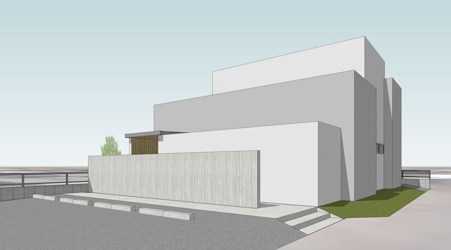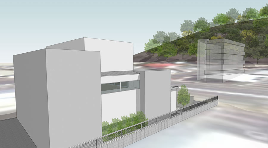 平面計画を進めるにつれ、国道と平行に4つの直方体のボリュームが建物の骨格として現れた。それぞれの直方体の高さを操作し、CGによるシミュレーションを重ね、外部から窓が見えにくい高さ、内部から秋葉山を望める高さが決定された。