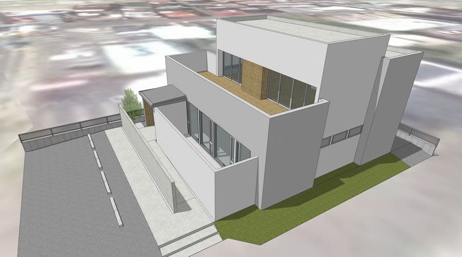 完全予約制の歯科医院であるため、営業的な外装デザインよりもストイックな佇まいの建物を建築主は希望され、なるべく外部から室内の様子が見えないようにすることが条件であった。また同時に、院長室やスタッフルームから秋葉山を望めるようにすることも求められたため、相反する課題を両立させることが本計画の最大のテーマとなった。