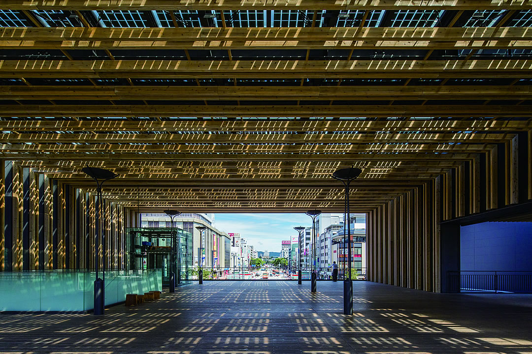 駅からまっすぐに延びる大手前通りの先に姫路城をとらえ、その特異な都市景観と世界遺産を保有した駅前空間を、歩行者優先のおもてなし空間にすることが最大のコンセプト。街の主役は姫路城と人(市民や観光客)であり、駅前空間は華美な装飾を排除した時代に左右されない和のデザインで意識統一された。