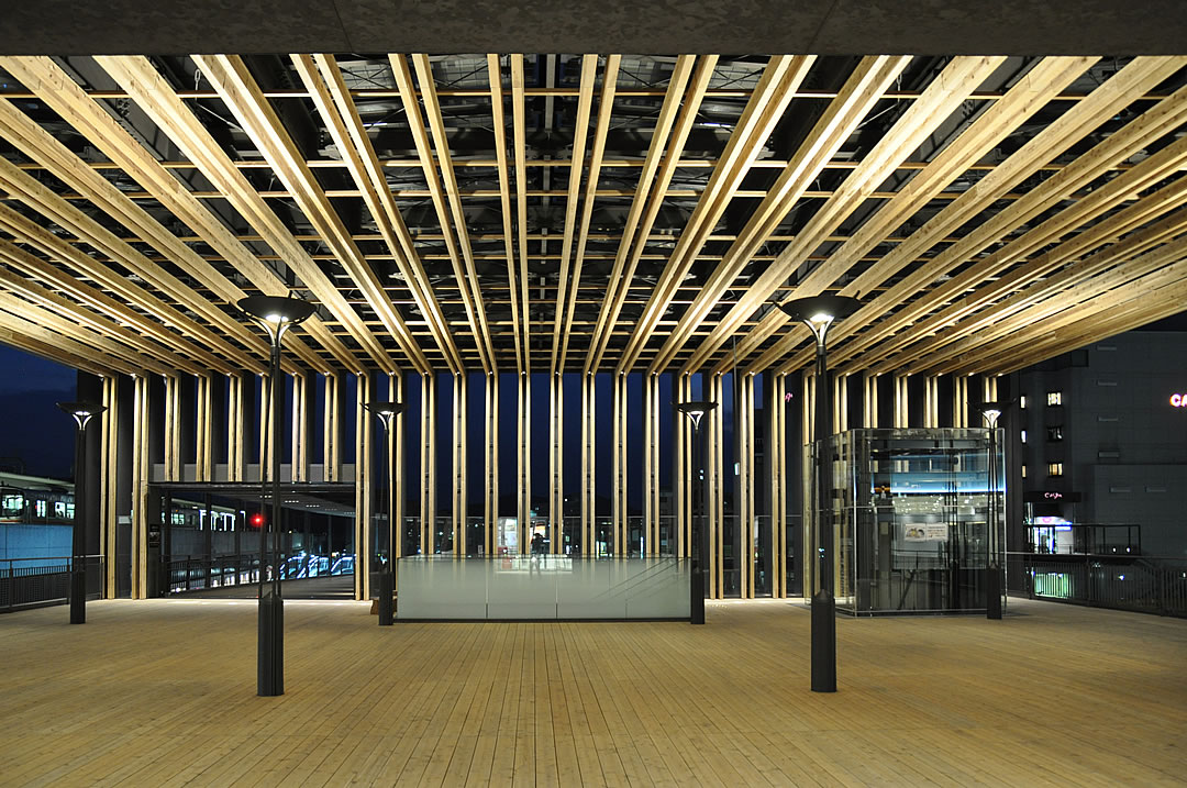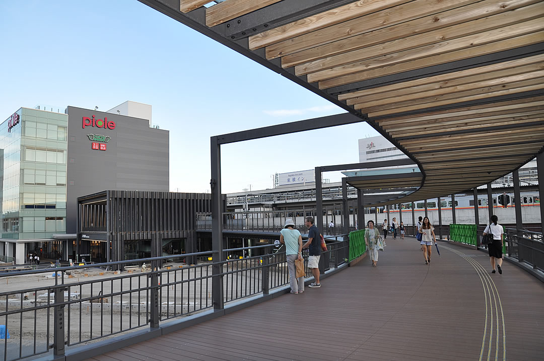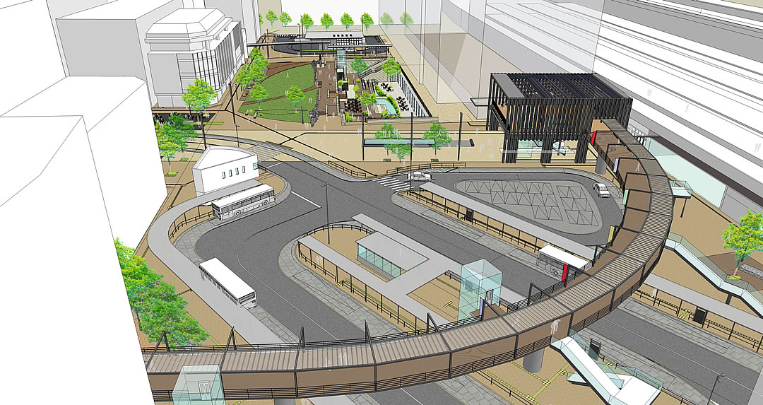 バスロータリー上部を貫通する連絡デッキ