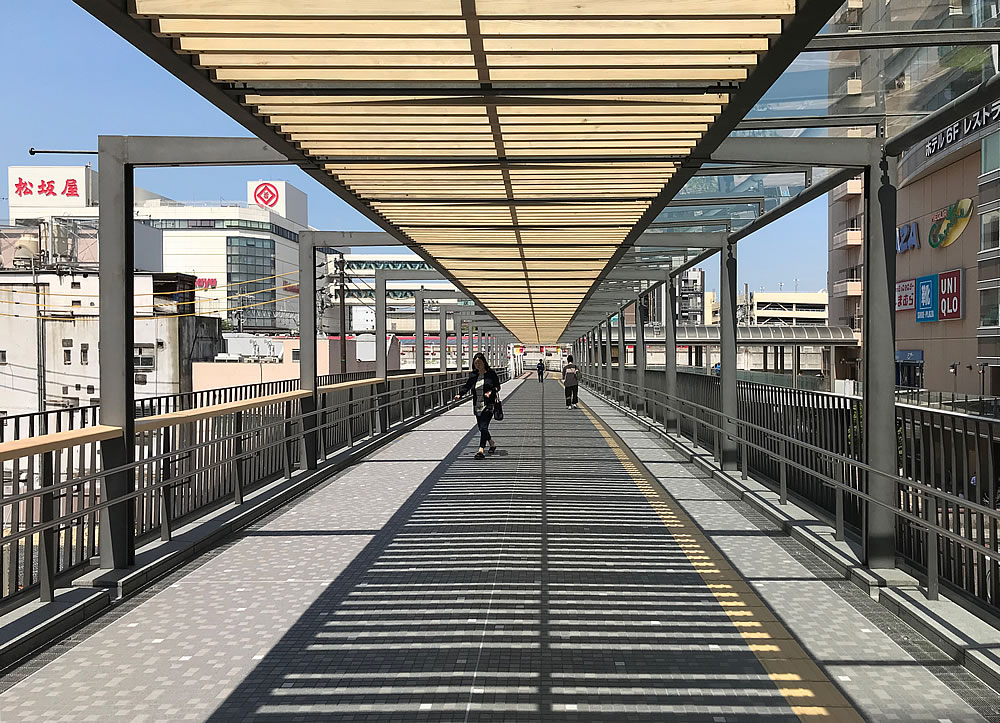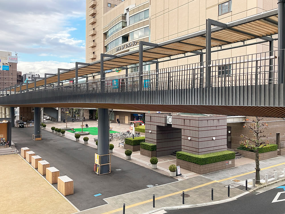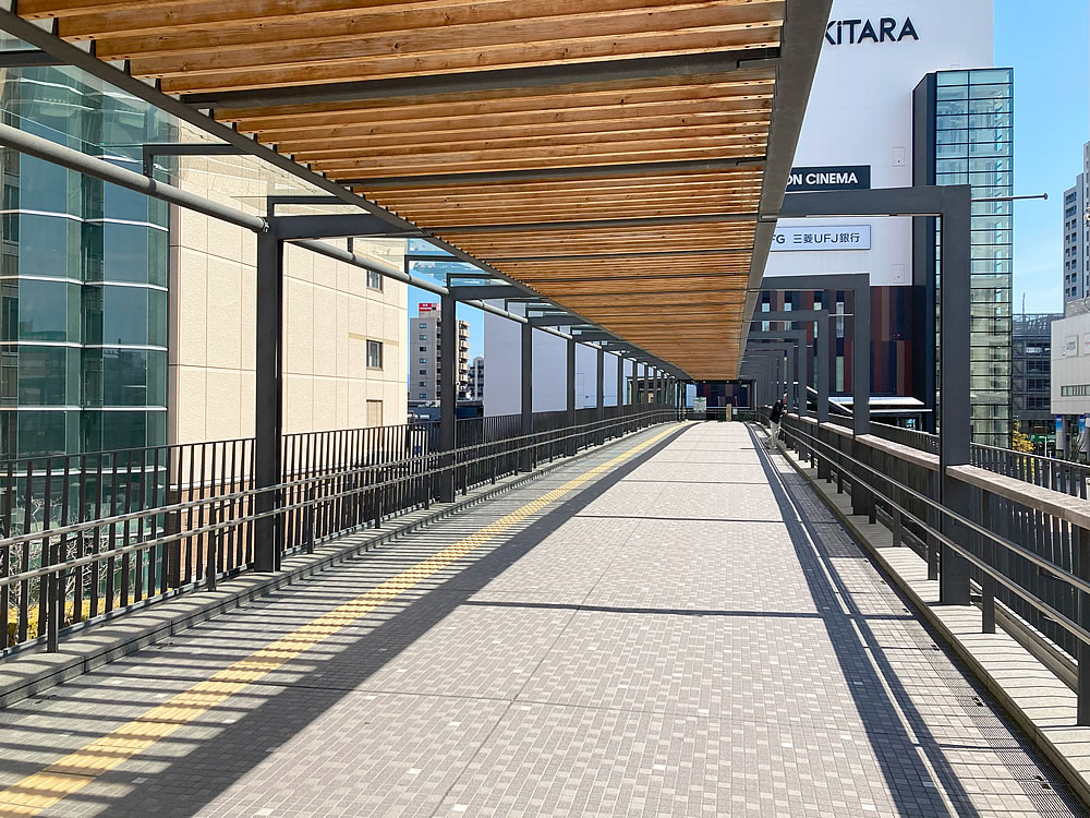 豊田市駅東口の複合再開発エリア、KiTARAへと接続する歩行者デッキの延伸整備。